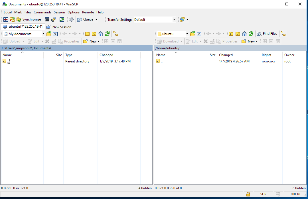 You will now see a traditional file browser with your local files on the left and your cloud instance on the right. You can drag and drop files as you need.